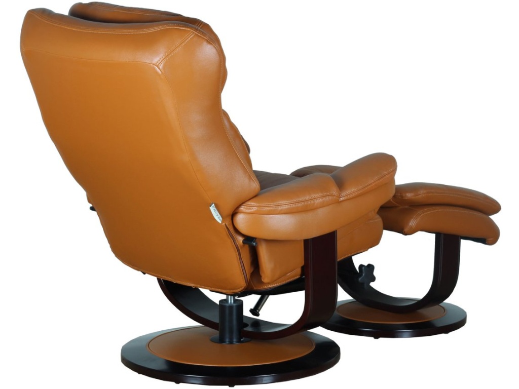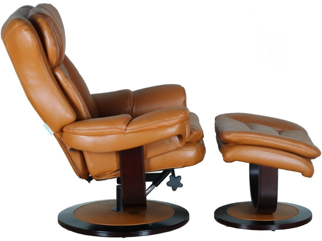 Product Description Oversized pedestal chair and ottoman features a layered back design with an articulated head rest, catchers mitt styled lower back for ultimate back support and pocketed coil seat cushion for superior long lasting comfort. Angled ottoman perfectly positions your leg for support and comfort. Reclining mechanism adjusts and locks to your desired comfort zone. Heavy duty wood base is finished in a rich Espresso finish.